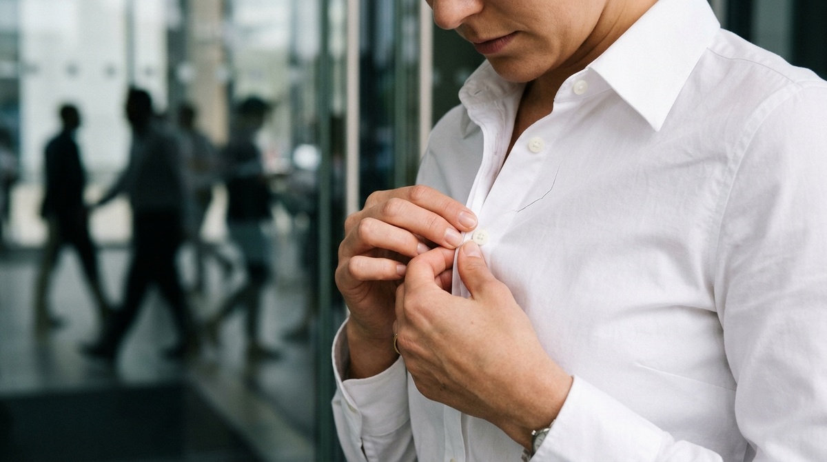 Есть истории, которые не рассказывают. Не потому что страшные. А потому что слишком точные. Эта — про меня. Про белую блузку, стеклянную дверь и незнакомца с портфелем, который теперь знает обо мне больше, чем некоторые друзья. Всё началось с того, что мне понадобилась справка. Не срочно, не критично — просто одна бумажка, которую «лучше иметь». Я записалась заранее, выбрала удобное время, надела белую блузку. Белую блузку я надеваю, когда хочу чувствовать себя человеком, у которого всё под контролем. Такой личный талисман собранности. Каблуки тоже были не случайны. На каблуках я хожу увереннее. Не выше, не стройнее — именно увереннее. Звук шагов по плитке создаёт иллюзию, что я точно знаю, куда иду и зачем. Я зайду на пять минут, думала я. Покажу документы, получу справку, уйду. Это была, конечно, наивность. Но красивая. В холле пахло бумагой, пластиком и чужим кофе из автомата в углу. Кондиционер дышал в затылок холодом. Я взяла талончик — очередь была небольшой, три человека вперед