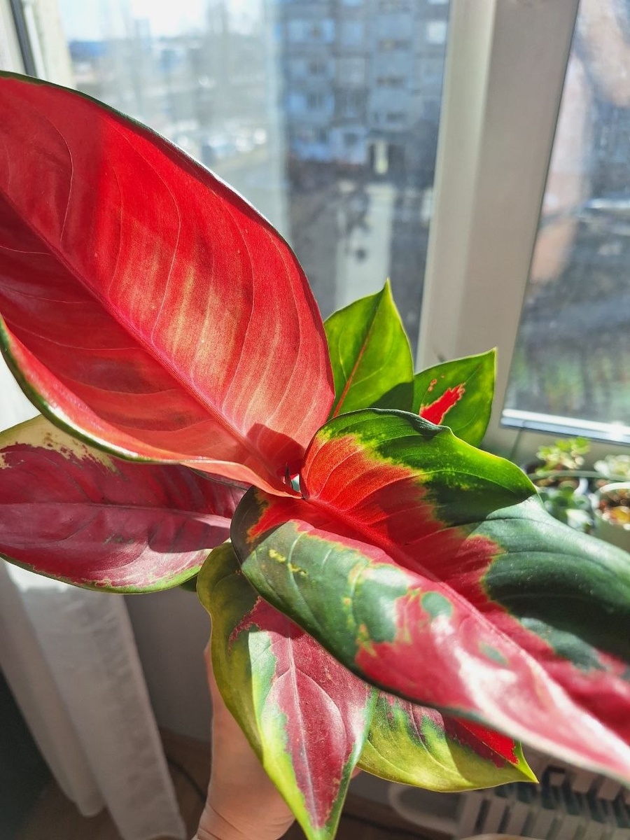 😁 Знакомьтесь, это аглаонема Ред Дракон и в прошлом году она окупила свою стоимость 3 раза. А все потому, что была очень плодовита и выдала 7 (!) деток. Потом она чуть полысела, в конце прошлого лета я переукоренила макушку (советую так делать со всеми аглаонемами), подсадила в тот же горшок с пеньком, затем из пенька вылез еще один побег. И вот недавно у нее появились 2 детки, но никого отселять я в этот раз не буду. Хочу, чтобы она была пушистенькой. Есть тут любители красных аглаонем? #аглаонема