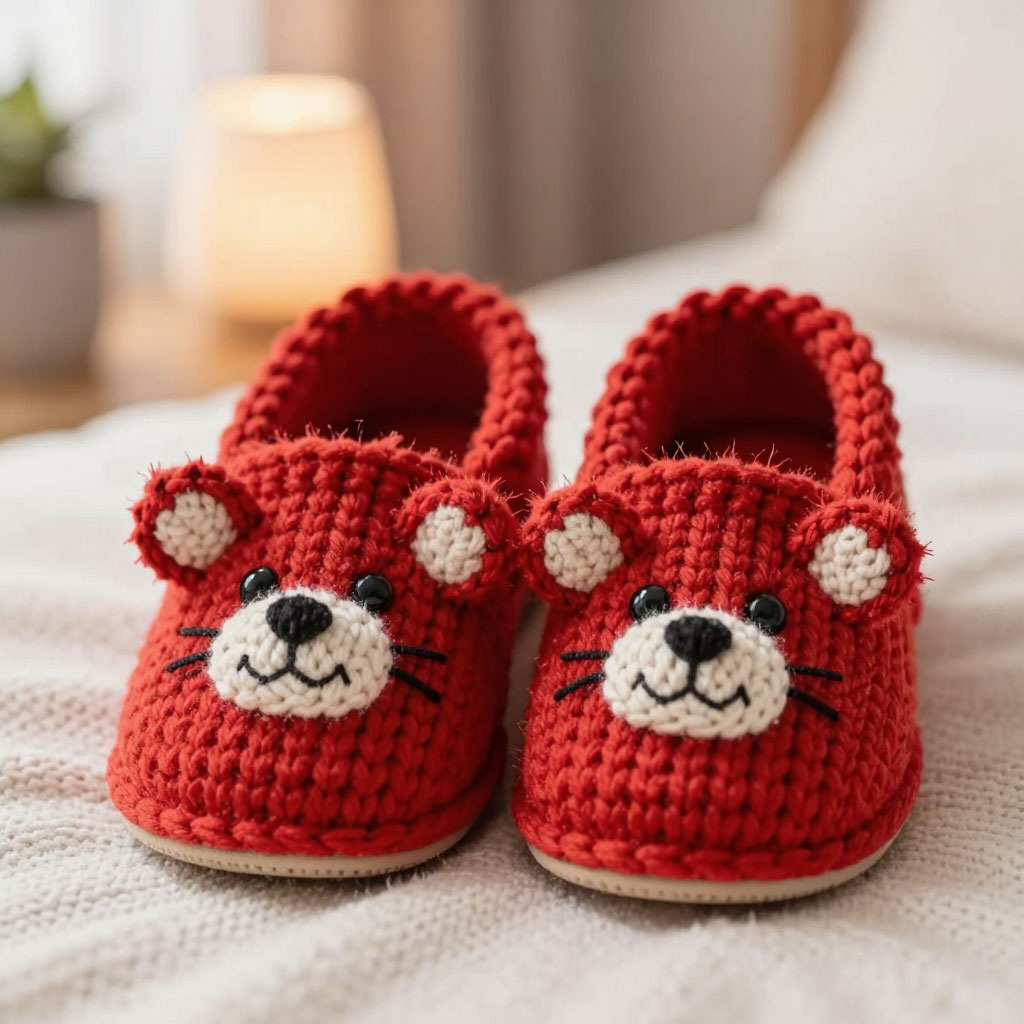 Вязаные тапочки-зверушки спицами (упрощённый вариант)