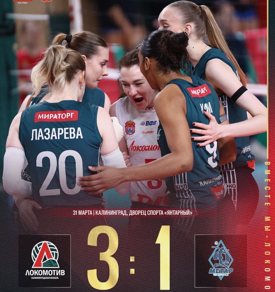 Волейболистки калининградского «Локомотива» одержали победу над челябинским «Динамо-Метаром» в матче Кубка России со счётом 3:1 (20:25, 25:21, 25:16, 25:13). После того, как «Локомотив» сумел переломить сопротивление челябинской команды во втором сете, третья и четвёртая партии дались нашей команде значительно легче. Заработали в полную силу все нападающие, а также знаменитый калининградский блок. «Локо» заставил чаще ошибаться соперниц и без проблем довёл матч до победы в четвёртом сете. Калининградский «Локомотив» вышел в полуфинал Кубка России. Сроки и место проведения полуфинальных матчей будут известны позднее. 0+