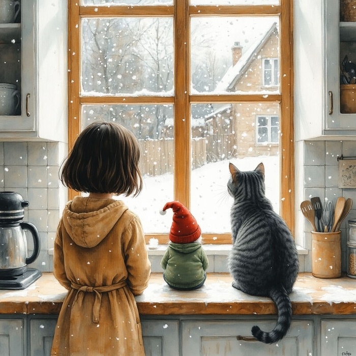 В конце января я переезжала в свою первую настоящую большую квартиру. Накануне переезда, уже поздно ночью на чемоданах и коробках, мы с котом смотрели в окошко съемной квартиры, как красиво падает снег. И я написала это стихотворение. А можно мне с тобой? Мне сон приснился ночью, Как будто бы на кухне Сидит и грустно плачет Пушистый домовой. И стало жалко очень, Его взяла на руки, А он шепнул тихонько: «А можно мне с тобой? И тут же кот маячит, И смотрит очень зорко, Хвостом своим виляет — Не пахнет ли едой? А домовой всё плачет И всхлипывает горько, И тихо повторяет: «Ну можно мне с тобой? Готовлюсь к переезду, Кот смотрит деловито, В хрущёвке этой старой Два года мы живём: «Признаюсь, если честно, Он был тебе защитой! Мышей и тараканов Он не пускал в наш дом! Заговорил розетки И летом, и в морозы Отодвигал невзгоды, Болезни прогонял. Он от окошка ветки Твоей капризной розы В любую непогоду Подальше убирал! Ему работы много С хозяйкою такою! И кот понюхал миску Не пахнет ли едой? А до