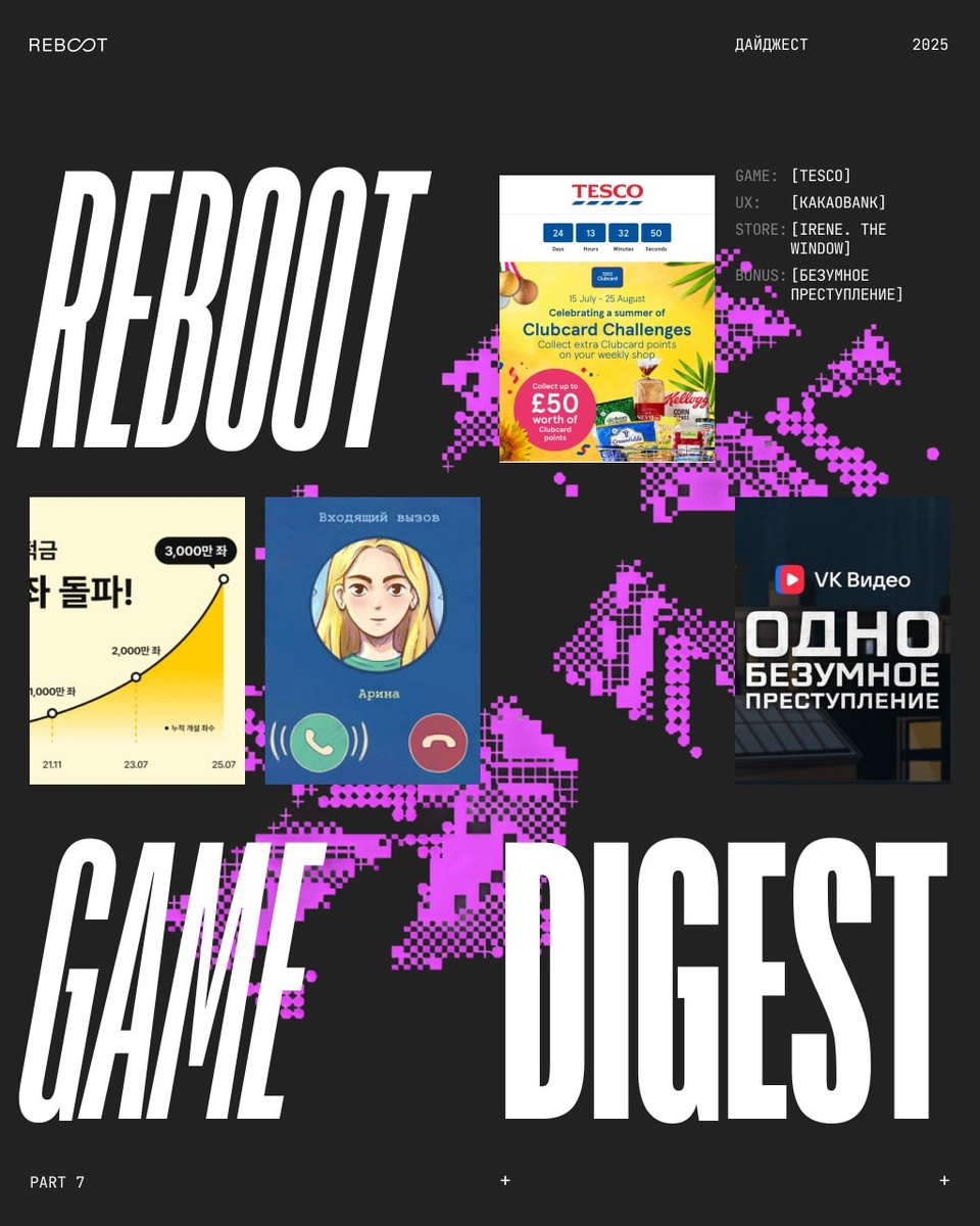 VOL 7 👀 Смотреть в фигме 👀 Внутри 4 блока 1. Игровые механики для бизнеса 2. Геймификация клиентского опыта 3. Топ игр в стиме 4. Бонустрек: игры из телеграм Блок — мини-обзор игры, её механик и применения в бизнесе 👀 В этом выпуске: Персонализированные задания от ИИ в приложении банка 30 миллионов открытых счетов, открытых за счёт челленджа Подруга, которая помогает вырваться из рутины Преступник, которого нужно поймать при помощи голоса __________ 🎵 Прошлый выпуск смотрите тут