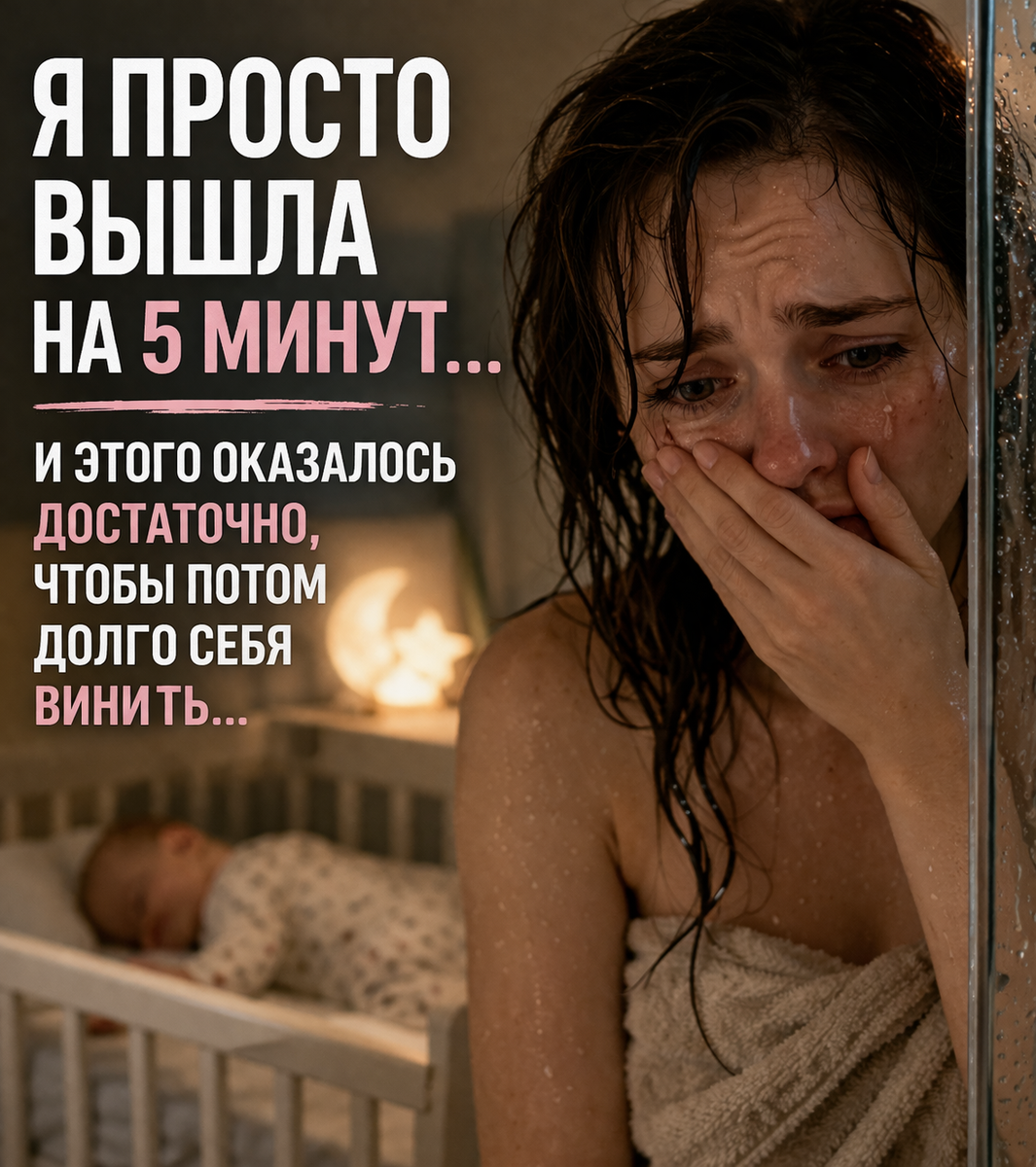 Я только уложила её, убедилась, что всё хорошо, и решила быстро выйти в душ. Потому что иногда эти 5 минут — единственное время, которое у тебя есть для себя.