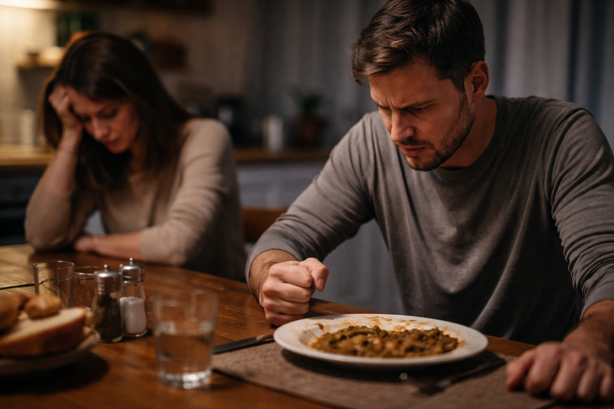 Я вздрогнула не от звука - от того, как ложка в его руке дрогнула и зазвенела о тарелку. Этот звук я знала. Он появлялся раньше слов, раньше злости, раньше даже его самого - как будто в него кто-то другой вселялся.