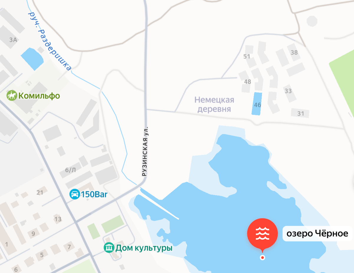 - Загрязнение стоками: Рузинское водохранилище и Чёрное озеро страдают от неочищенных канализационных сливов, поступающих через ручей Раздеришка.