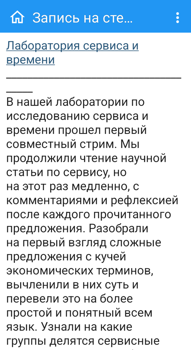 "В нашей Лаборатории по исследованию сервиса и времени прошел первый совместный стрим. Мы продолжили чтение научной статьи по