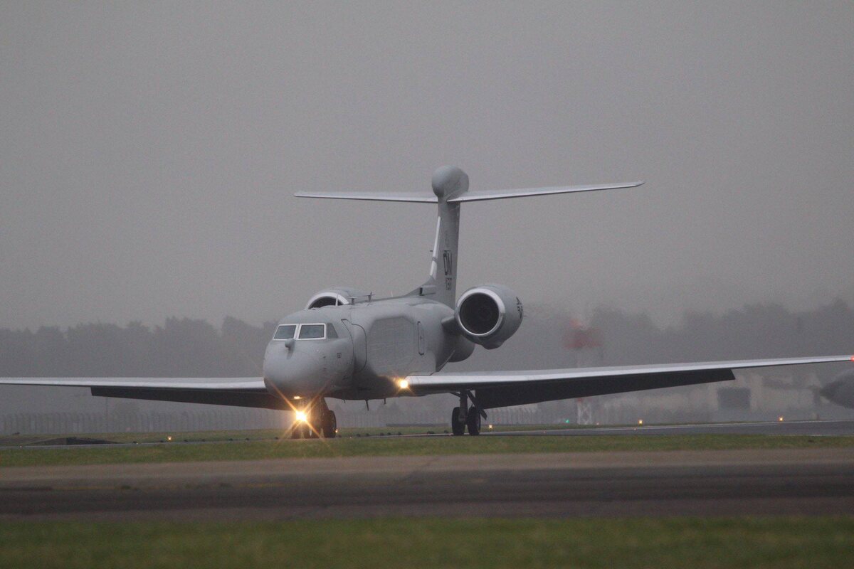 Прибытие новейшего самолёта РЭБ EA-37B Compass Call ВВС США на авиабазу Милденхолл в Великобритании, вероятно, для последующей переброски на