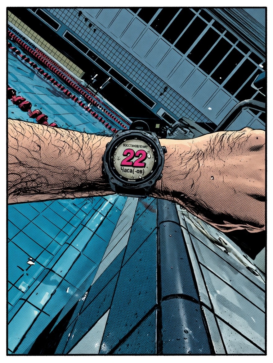 Интересный момент: оба рабочих сета прошли на ровном количестве гребков на 100 метров. Руки после воскресенья ещё были тяжёлыми, особенно плечи, поэтому общее ощущение — лёгкая тяжесть, но без развала техники.