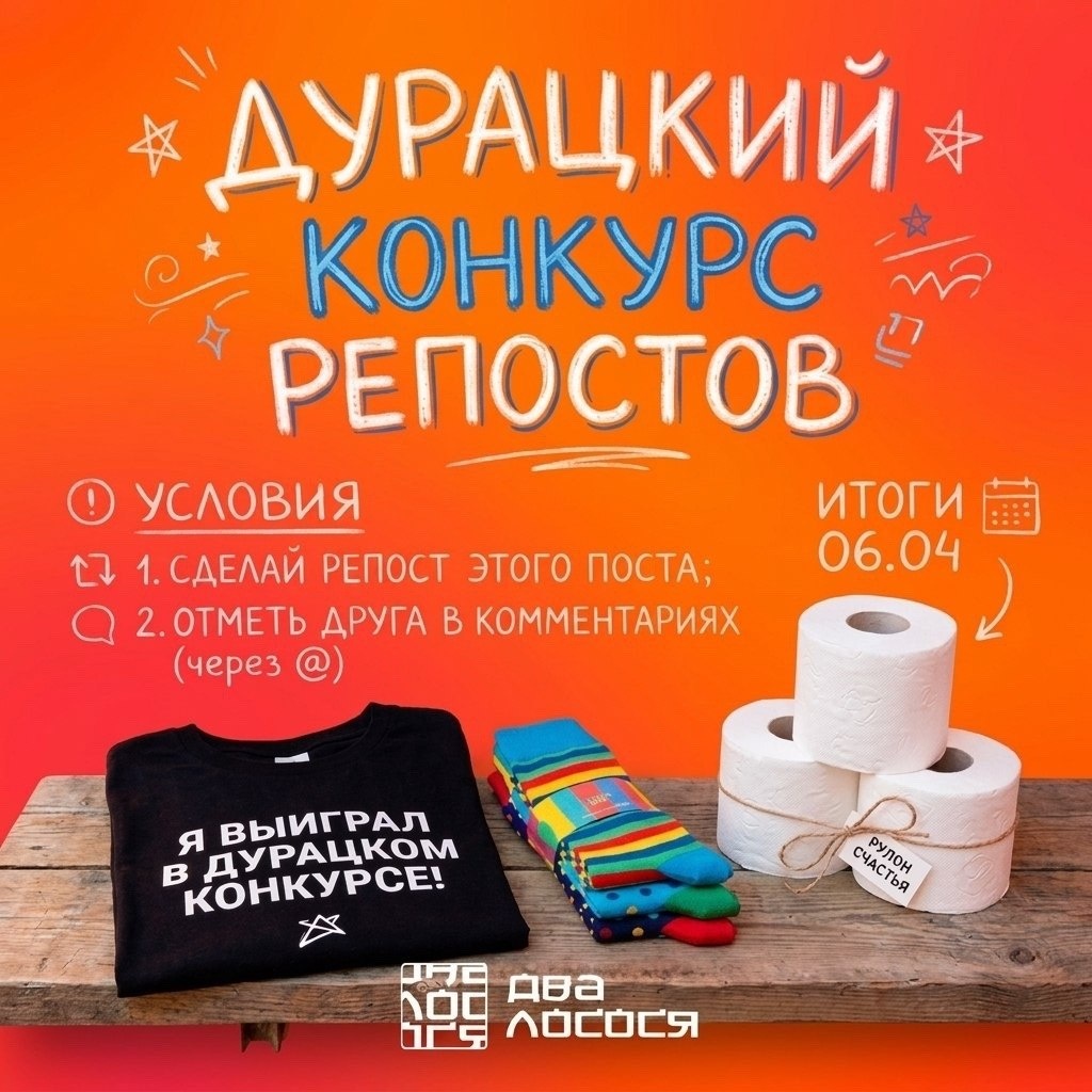! 😂 Можно выиграть прикольные подарки (см. карусель): - футболку с цитатой Путина «Везёт дуракам, а мы работаем с утра до ночи!» - набор суши‑носков; - самому смелому 12 рулонов туалетной бумаги🧻 - сертификаты от «Два лосося» на 500₽ - 5 шт - для любителей по(ж)есть 20 роллов Темпура к заказу от 500₽ Как участвовать? Подробнее 👉 vk.ru/wall-230688957_12592