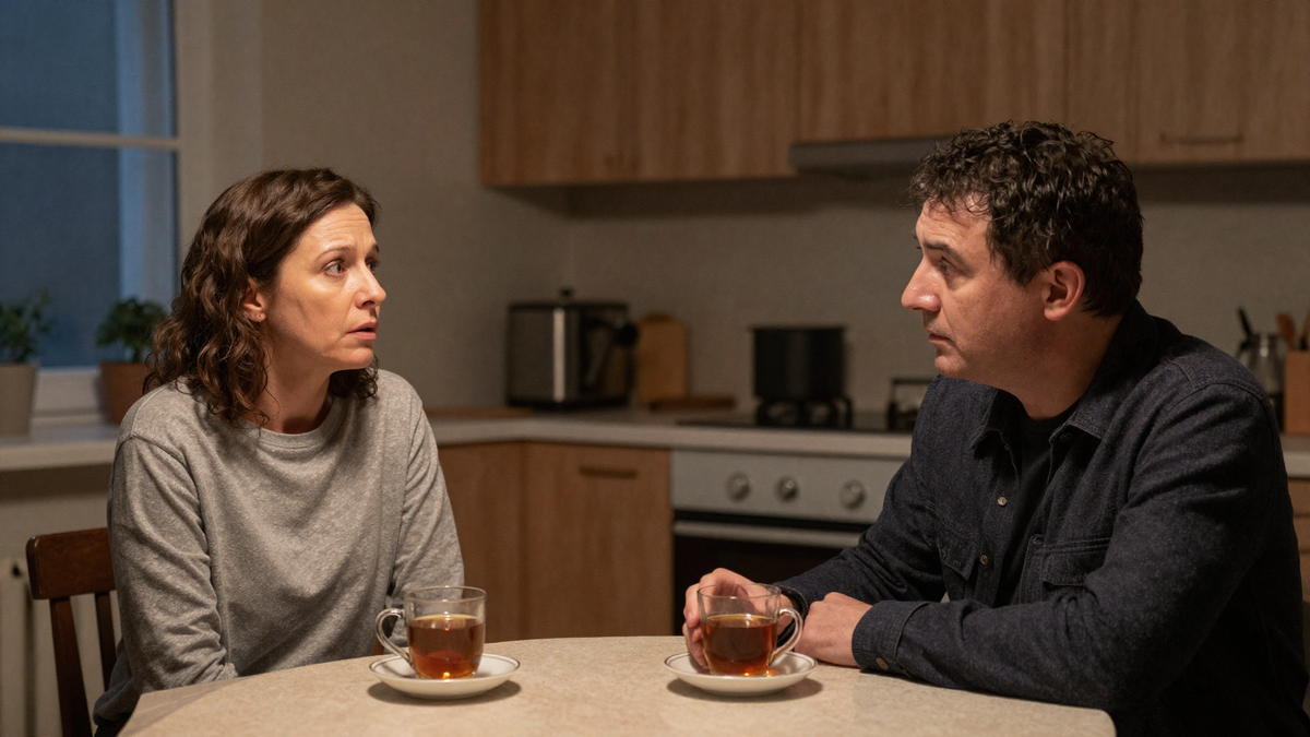 Наша кухня небольшая — стол у окна, четыре стула, холодильник гудит в углу. Мы купили этот стол ещё когда въезжали сюда, двенадцать лет назад. Тогда он казался большим. Сейчас казался маленьким — нас двое, а места нет.
