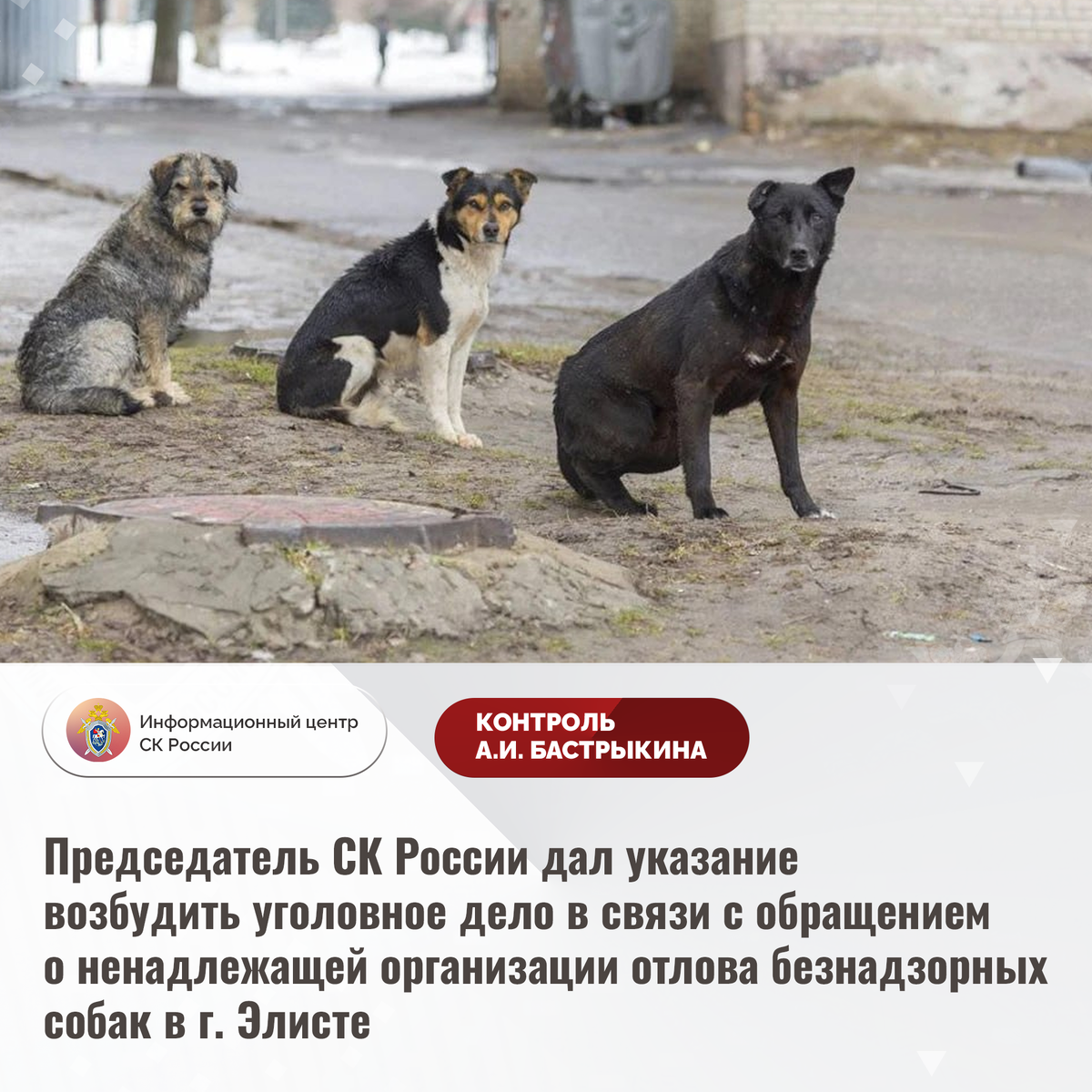 Председатель СК России дал указание возбудить уголовное дело в связи с обращением о ненадлежащей организации отлова безнадзорных собак в г. Элисте В Информационный центр СК России поступило обращение по вопросу бездействия профильных структур при организации отлова безнадзорных собак в 5-м микрорайоне города Элисты. На протяжении длительного времени вблизи жилых домов обитает большое количество животных без владельцев, которые систематически нападают на местных жителей. Многочисленные обращения граждан в различные инстанции результатов не принесли. Председатель Следственного комитета Российской Федерации Александр Иванович Бастрыкин поручил руководителю СУ СК России по Республике Калмыкии Константину Леонидовичу Антохову возбудить уголовное дело и доложить о ходе и результатах его расследования. Исполнение поручения поставлено на контроль в центральном аппарате ведомства. #СледственныйКомитет #СКРоссии #СКР #ИЦСКР #ИнформационныйЦентр #АлександрБастрыкин #ПредседательСКР #КонтрольПред