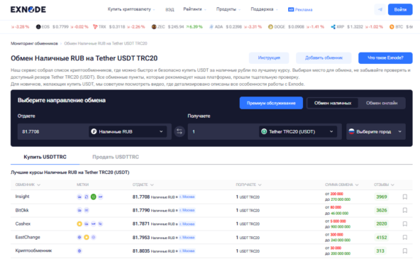 Чтобы выбрать надежный сервис и выгодный курс, можно использовать мониторинг обменников, например, Exnode — здесь собраны проверенные платформы, актуальные курсы и реальные отзывы пользователей. Это значительно упрощает процесс выбора и снижает риски при покупке TON Coin.