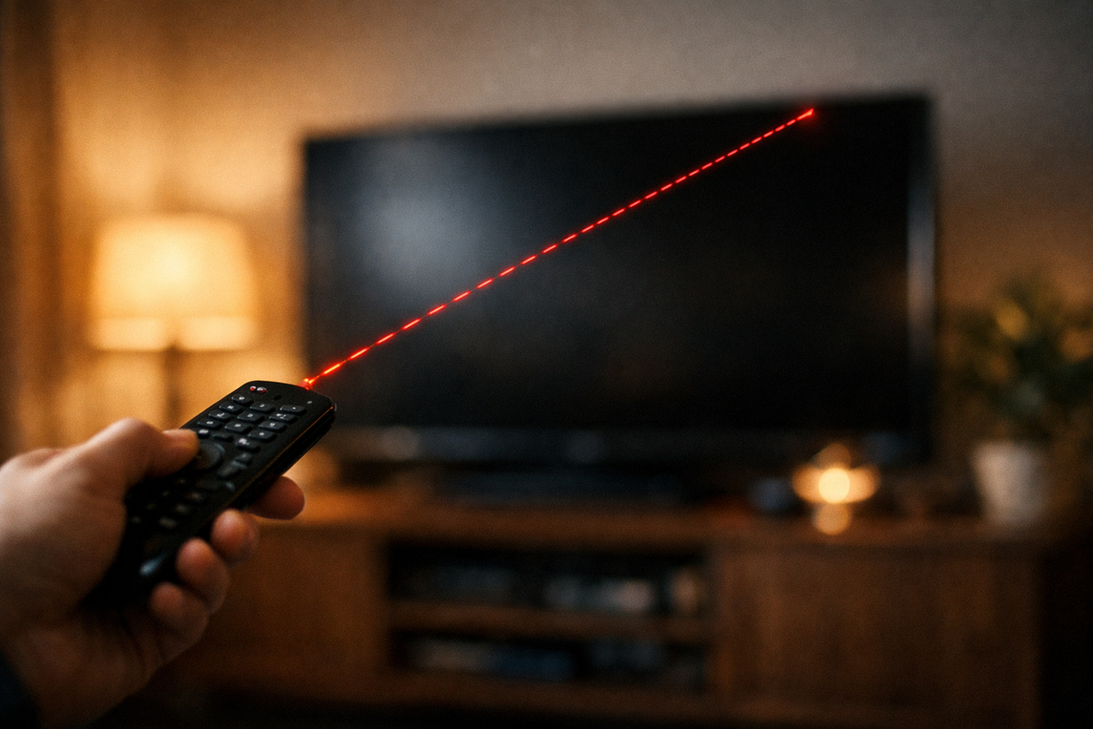 Большинство обычных пультов работают через инфракрасный сигнал. Это не радиосвязь, а направленный луч. Он должен попасть в приемник на устройстве. Если между пультом и техникой есть препятствие или угол слишком острый, сигнал просто не доходит.