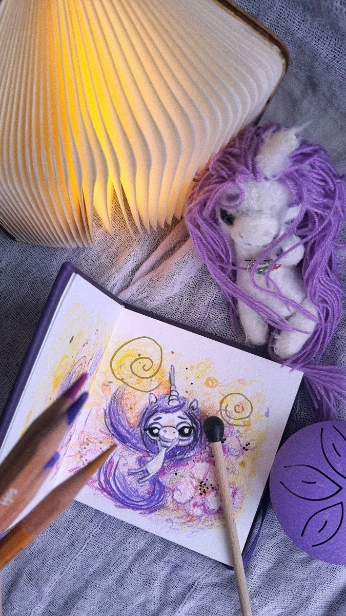 ? Просто почувствовать её, ощутить каждой клеточкой, позвать на помощь единорожку и нарисовать её в весенних цветах. Готово. Теперь можно чувствовать радость через картинку. Вот так открыл скетчбук и оп, радость💜 #дофаминовый_арт_марафон_с_катей #единорожьесчастье #maleviches
