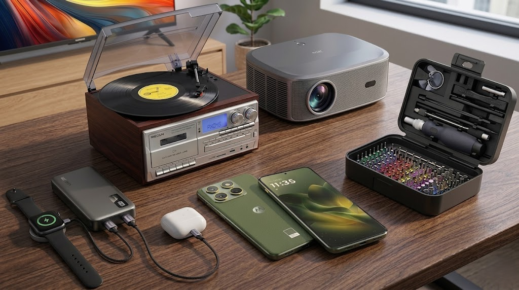 На AliExpress начались Апрельские Дни выгоды — подходящее время для обновления техники. Подобрали 12 устройств для дома, работы и отдыха: от смартфона и телевизора до набора отвёрток и проигрывателя. Всё, что помогает держать связь, смотреть фильмы или ремонтировать электронику.