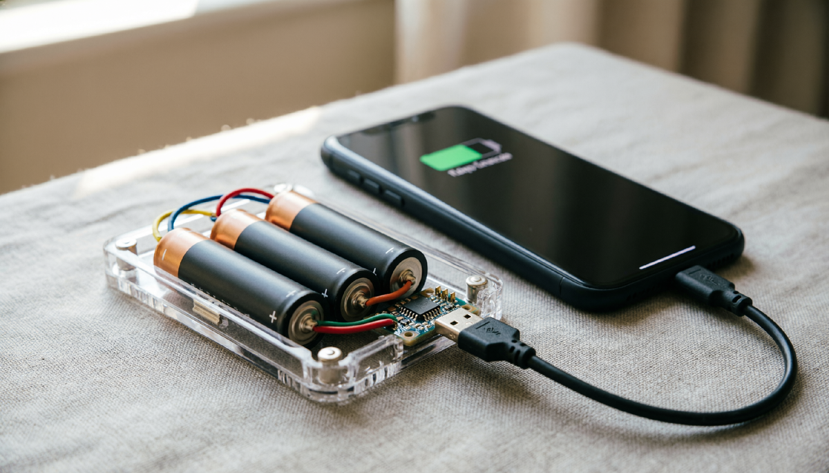 В условиях отключения света обычный повербанк может оказаться недоступен. Возникает вопрос: можно ли использовать обычные батарейки типа AA для питания телефона? Я провел эксперимент, чтобы выяснить эффективность этого метода без использования сложной электроники. Что понадобилось для сборки: Сборка: Батарейки фиксируются на линейке последовательно. Провода от кабеля подключаются к началу и концу цепочки (важно соблюсти плюс к плюсу, минус к минусу). На выходе мультиметр показал 5.5–6 вольт. Это превышение не критично, так как контроллер питания телефона понизит его до нужных 5 вольт. Результаты теста:
