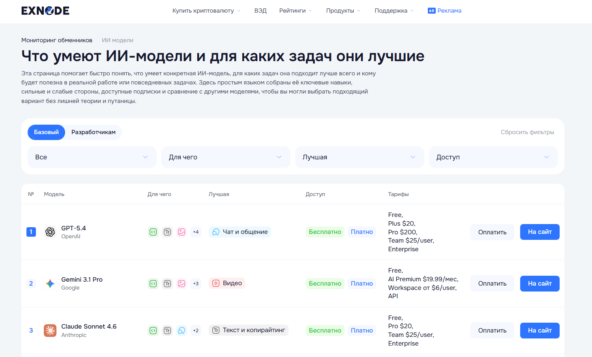 Exnode - сервис мониторинга рейтинга ИИ - моделей