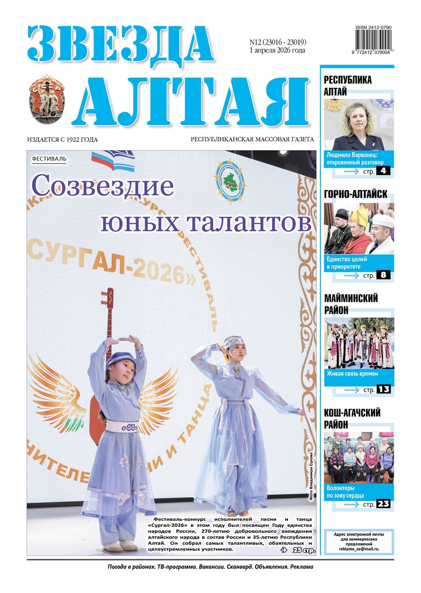 ! 🔹Росгвардия: В Республике Алтай отметили 10-летие Росгвардии и 215-летие Войск правопорядка. Торжественное собрание, приуроченное к двойному юбилею, прошло в Национальном театре. 🔹Театральная премьера: В драмтеатре состоялась первая в году премьера спектакля «Горные духи». Постановка приурочена к 90-летию алтайского писателя Бориса Укачина. Основой для спектакля послужила его одноименная повесть. 🔹Турнир по теннису: В селе Онгудай прошел республиканский турнир по настольному теннису. Соревнования посвятили памяти талантливого организатора Сергея Чараганова. На его родине продолжают чтить его многолетний вклад в развитие региона. 🔹Гражданский форум: В Горно-Алтайске в шестой раз прошел Гражданский форум. Мероприятие было посвящено Году единства народов России и семейным ценностям. 🔹Статус земель: Особо ценные сельскохозяйственные земли республики получили новый охранный статус. Правительство утвердило сводный перечень из 484 участков, использование которых в других целях теп
