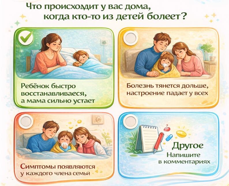 : Часто родители замечают, что ребёнок снова заболел, и думают: «Надо укреплять иммунитет». 💊 И начинают давать витамины, сиропы… Но болезнь повторяется. И мама снова устает, тревога растёт, аптечка растёт… 😔 💡 Вот простой вопрос, который может многое показать: Что чаще всего происходит у вас дома, когда кто-то из детей болеет? ⚡ Новый взгляд: Часто причина повторяющихся болезней не там, где мы её ищем. Иногда проблемы начинаются в режиме дня, привычках семьи или эмоциональном фоне, и именно это влияет на то, как организм реагирует на вирусы. То, что кажется случайным, на самом деле имеет закономерность — и её можно увидеть, если знать «цвет здоровья» вашей семьи. 🌈 ✨ Хотите увидеть всю систему и понять, где слабое место семьи, чтобы болезни больше не шли по кругу? Пройдите тест «Палитра здоровья семьи» 👉 t.me/aromalife_gide_bot Завтра на эфире разберём все 4 системы здоровья семьи и как соединять их воедино и работать с «Палитрой здоровья семьи».🎨
