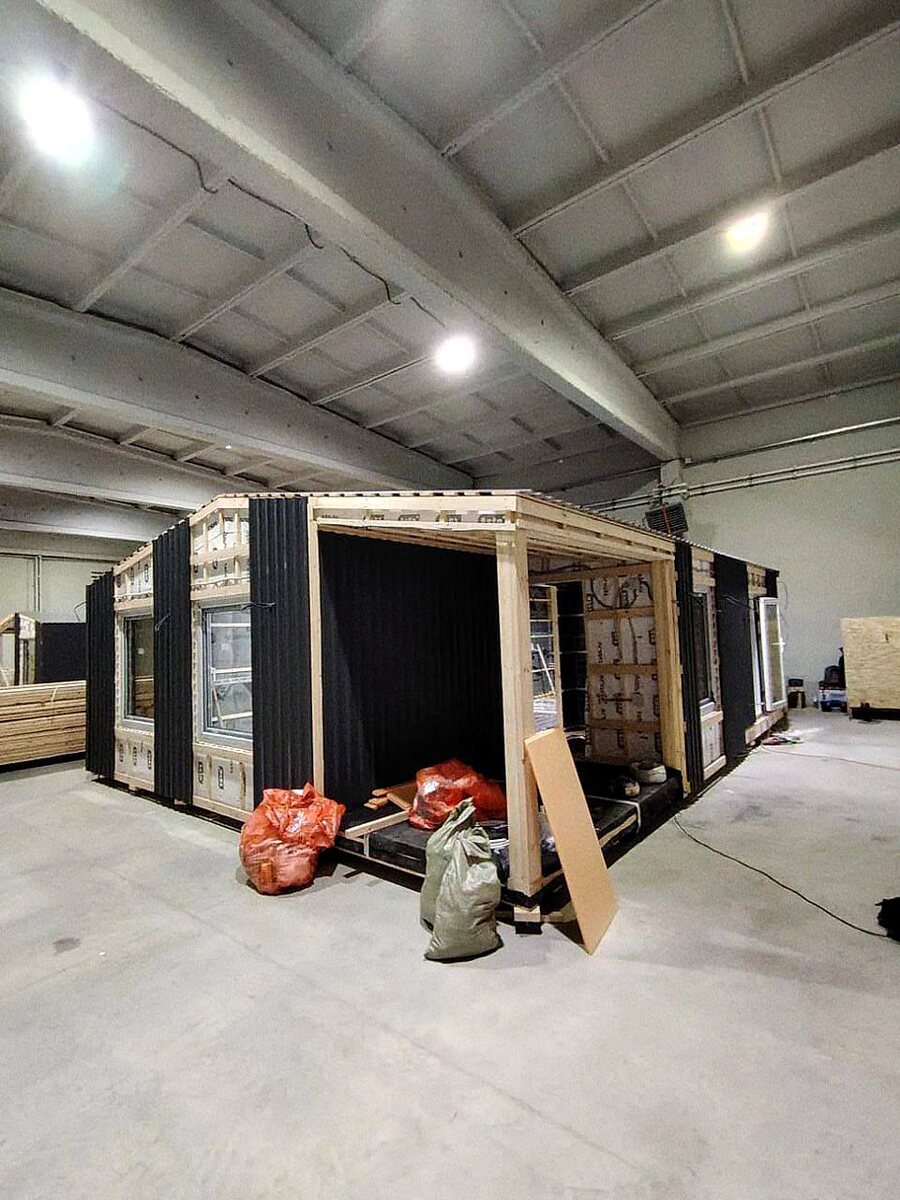 Монтаж по сухой технологии, выполненный на заводе модульных каркасных домов в г