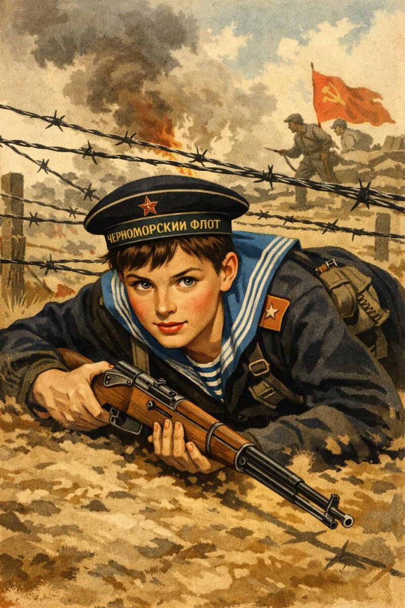 Ей неинтересны их ужимки и пляски странные, она старше своих одноклассниц. У нее четкие приоритеты в жизни, есть на кого опереться, ну а то, что нет мамы, так после войны много у кого нет. Зато у нее тральщик, первая рота морской пехоты и Севастополь. А пообнимать есть кому, потому совсем иначе смотрит на жизнь наша Юля. — Здравствуйте, товарищи, — спокойно здороваюсь я с одноклассницами. Они разные — веселые, озорные, улыбчивые и грустные, но они дети. Вот смотрю на них и понимаю — дети они совсем, а я… я нет. Я юнга флота, снайпер, связист, но совсем не ребенок уже, ведь не для кого мне быть ребенком. Зато я совершенно точно буду защищать таких детей от любого врага, чтобы не плакали они. И вот подумав так, я внутренне успокаиваюсь. Ее уважают учителя, и знают все военные города, ведь достопримечательность наша Юлька. Потому никого не удивляет военный "козлик", встречающий ее после школы. А ее — военная форма с петлицами, а не погонами, ну и винтовка ее вылизанная в мастерских. Он