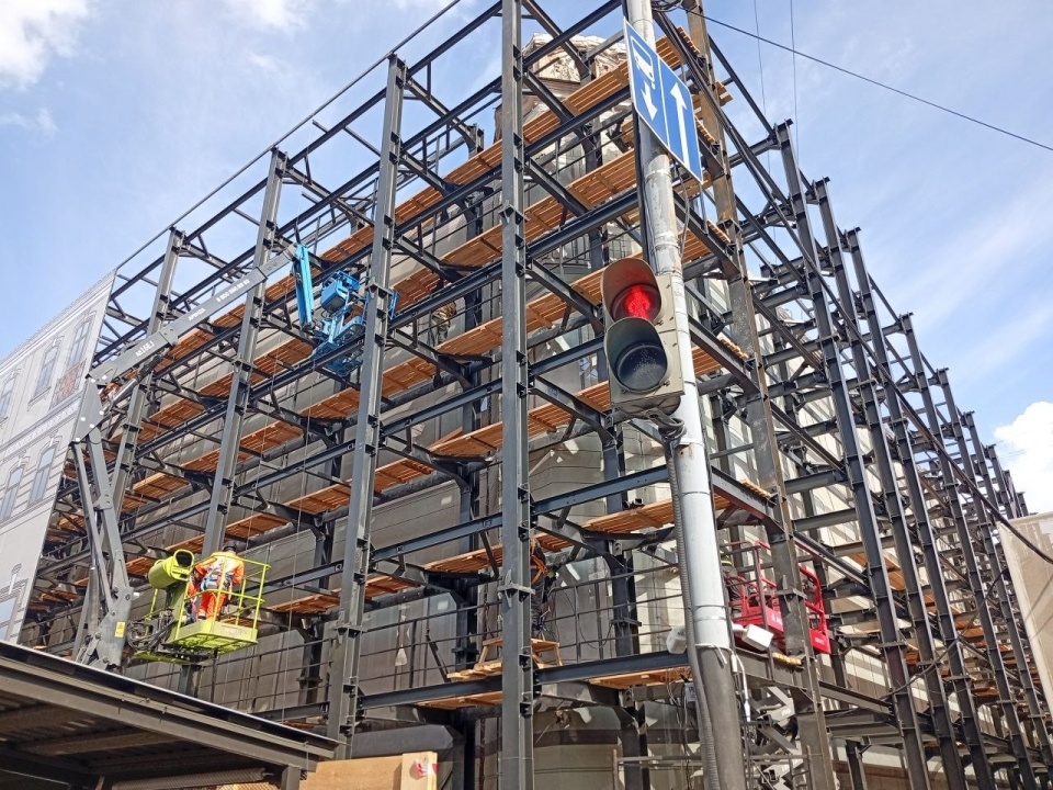 Саратовцы приятно удивлены качеством организации работ по реставрации гостиницы "Россия". Свое мнение они высказывают в сообщениях, поступающих в редакцию ИА "Взгляд-инфо". "Первый раз в Саратове качественные леса, современное и прочное ограждение и работы по реставрации, ведущиеся по мировым нормативам", - написал нам один из читателей. Проверить это утверждение на проспект Столыпина отправился наш корреспондент, который поделился своими впечатлениями: "Действительно, монтаж строительных лесов вокруг гостиницы "Россия" закончен. Если честно, то я впервые вижу такие мощные леса из стальных балок. Вероятно, они служат не только для надежного и безопасного перемещения строителей, но и для поддержки внешней стены гостиницы, если что-то пойдет не так – ведь от здания реально осталась одна стена. Отмечу ограждение. Оно действительно современное, прочное и выглядящее очень эстетично. В Саратове все больше предпочитают сосновые доски бросового качества для подобных заборов, но тут темно-корич