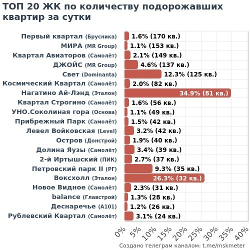 ) 🏆 ЛИДЕРЫ ПО РОСТУ: Самолёт 18 ЖК 750кв +4,7% ПИК 14 ЖК 71кв +4,0% A101 6 ЖК 88кв +8,4% Гранель 5 ЖК 8кв +10,8% Эталон 5 ЖК 123кв +14,7% Брусника 4 ЖК 209кв +1,4% Level 4 ЖК 87кв +1,5% Основа 3 ЖК 66кв +3,7% 1 ДСК 3 ЖК 8кв +10,4% Страна 3 ЖК 107кв +17,0% 👇 Полная статистика: 📲 В Telegram — быстро посмотреть 🌐 На MskMeter.ru — графики цен и скидки за любой период