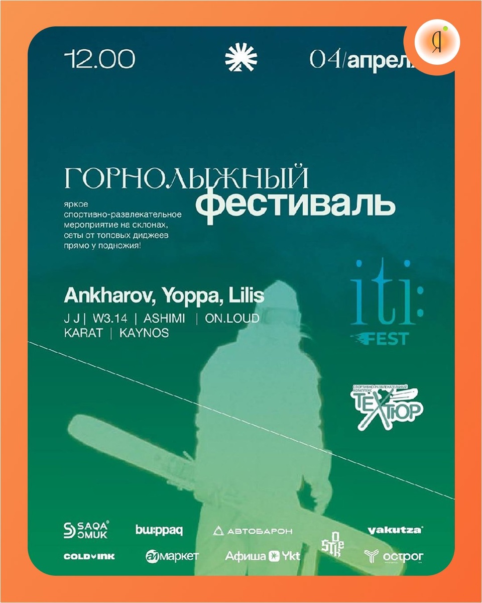 Iti:fest & Vibes #ЗаГородом Вас ждёт: - Площадка от лыжной базы «Техтюр» - LIVE-выступления под открытым небом - «SnowDrift»– турнир по слалому совместно с @autobaron - Фирменная музычка и атмосфера от Вайбс - Розыгрыши и призы - Вечером – афтепати в старом городе 4 апреля | 12:00 СРК «Техтюр», Хангаласский улус, Покровский тракт 46 км Вход по прайсу «Тетхтюр»: 200-300 руб. Аренда снаряжения и некоторые аттракционы по отдельному прайсу Online Якутия | Ждем вас в МАХ