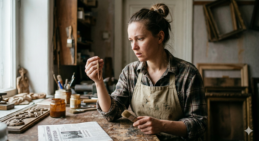 Запах скипидара и старого дерева встретил Игоря прямо у порога. Он поморщился, сбрасывая туфли, и, не глядя на жену, прошагал на кухню. Марина замерла у окна. В руках — тонкий скальпель, перед ней на расстеленной ветоши — резной подсвечник, покрытый многослойной патиной.