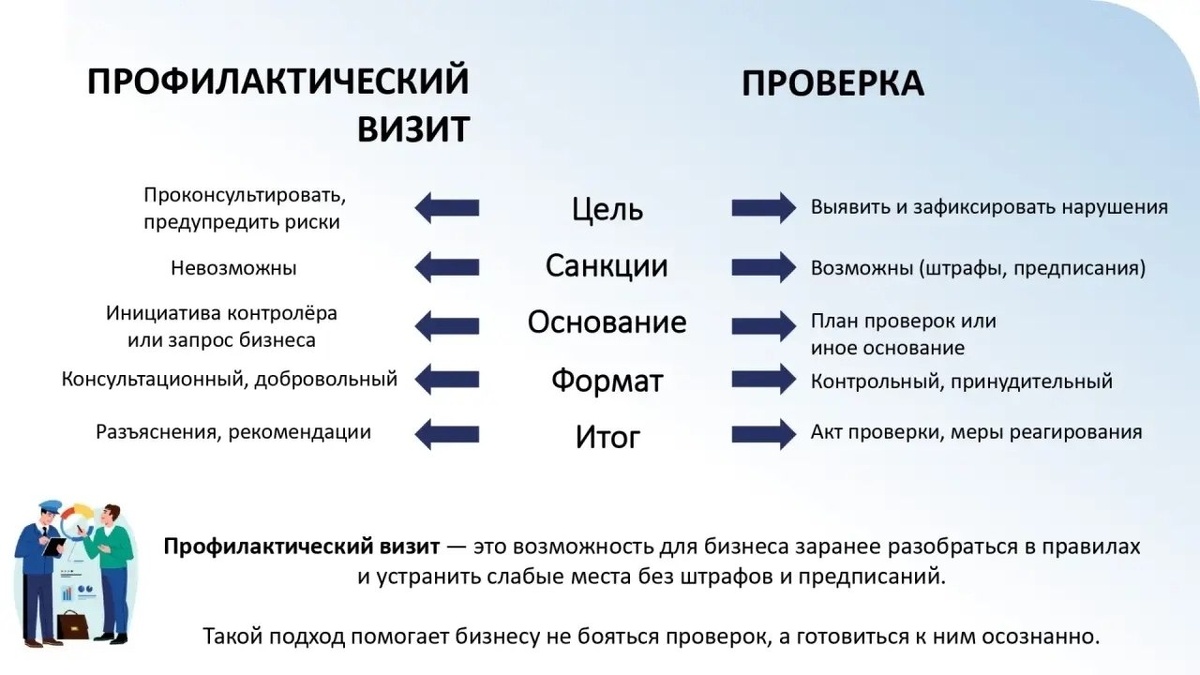 ? ΠΡΠ°ΠΊΡΠΈΠΊΠ° ΠΏΠΎΠΊΠ°Π·ΡΠ²Π°Π΅Ρ, ΡΡΠΎ ΠΏΡΠ΅Π΄ΠΏΡΠΈΠ½ΠΈΠΌΠ°ΡΠ΅Π»ΠΈ Π½Π΅ Π²ΡΠ΅Π³Π΄Π° ΡΡΡΠΊΠΎ ΡΠ°Π·Π³ΡΠ°Π½ΠΈΡΠΈΠ²Π°ΡΡ ΠΏΠΎΠ½ΡΡΠΈΡ Β«ΠΏΡΠΎΠ²Π΅ΡΠΊΠ°Β» ΠΈ Β«ΠΏΡΠΎΡΠΈΠ»Π°ΠΊΡΠΈΡΠ΅ΡΠΊΠΈΠΉ Π²ΠΈΠ·ΠΈΡΒ», ΠΈΠ·βΠ·Π° ΡΠ΅Π³ΠΎ ΡΠΏΡΡΠΊΠ°ΡΡ Π²ΠΎΠ·ΠΌΠΎΠΆΠ½ΠΎΡΡΡ ΠΏΠΎΠ»ΡΡΠΈΡΡ ΡΠ²ΠΎΠ΅Π²ΡΠ΅ΠΌΠ΅Π½Π½ΡΡ Π±Π΅ΡΠΏΠ»Π°ΡΠ½ΡΡ ΠΊΠΎΠ½ΡΡΠ»ΡΡΠ°ΡΠΈΡ ΠΎΡ Π³ΠΎΡΡΠ΄Π°ΡΡΡΠ²Π°. Π Π°Π·Π±Π΅ΡΡΠΌ ΠΎΡΠ½ΠΎΠ²Π½ΡΠ΅ ΠΎΡΠ»ΠΈΡΠΈΡ Π½Π° ΡΠ»Π°ΠΉΠ΄Π΅ β¬οΈ
