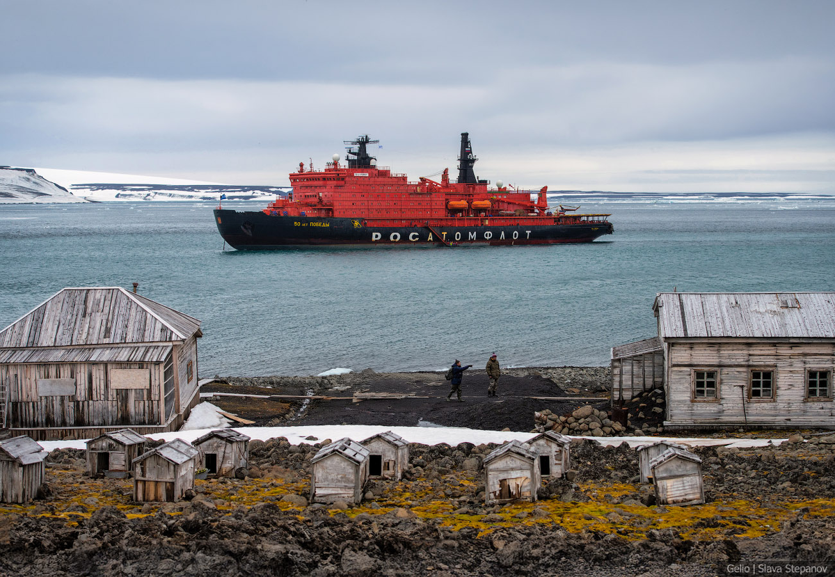 2. Чаще всего туристы попадают сюда в рамках круиза на Северный полюс — ежегодно проводится до трёх экспедиций в год на ледоколе «50 лет Победы». Ледокол перевозит до 150 пассажиров и заходит на острова архипелага на обратном пути. Если позволяет погода, то туристы высаживаются и на берегу станции Бухта Тихая.