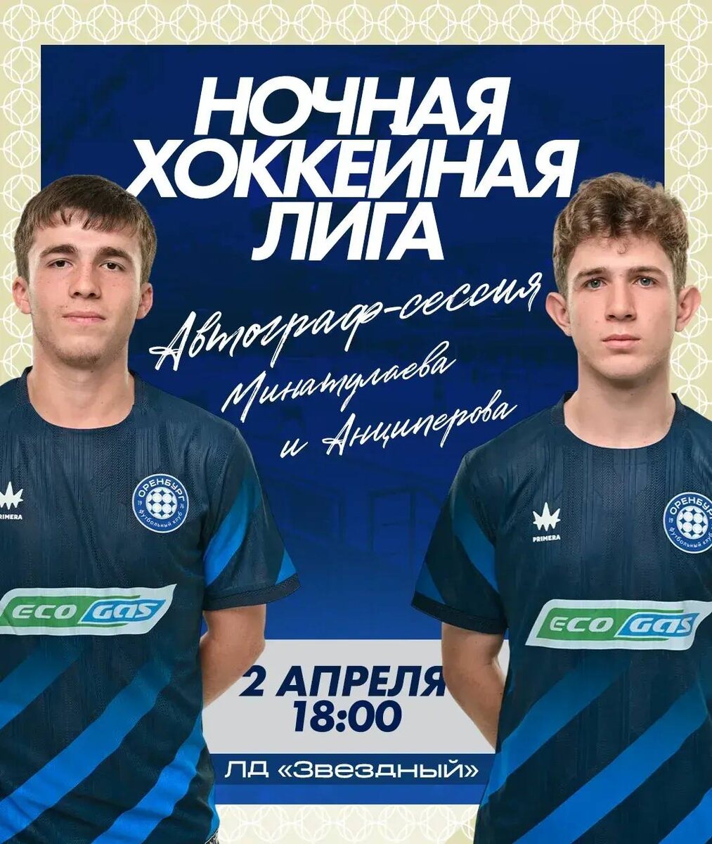 »! 🏒 Завтра в 19:30 в Ледовом Дворце «Звездный» наши футболисты Егор Анциперов и Омар Минатулаев вместе с вами посмотрят гала-матч между ХК «Оренбуржье» и «Сборной звёзд», перед которым состоится церемония награждения победителей регионального этапа. А еще в 18:00 для вас будут организованы различные интересные активности и автограф-сессия с легендой хоккея Игорем Мишуковым! Ждем вас! Вход свободный! #ФКОренбург