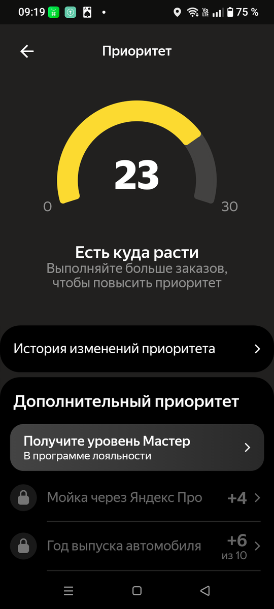 Да и то, снижение на 7 баллов произошло по причине того, что в момент полоски авто, пассажир уже находился в салоне и мне пришлось прекратить заказ. За это отдали 7 баллов приоритета. Обидно, но черт с ним.
