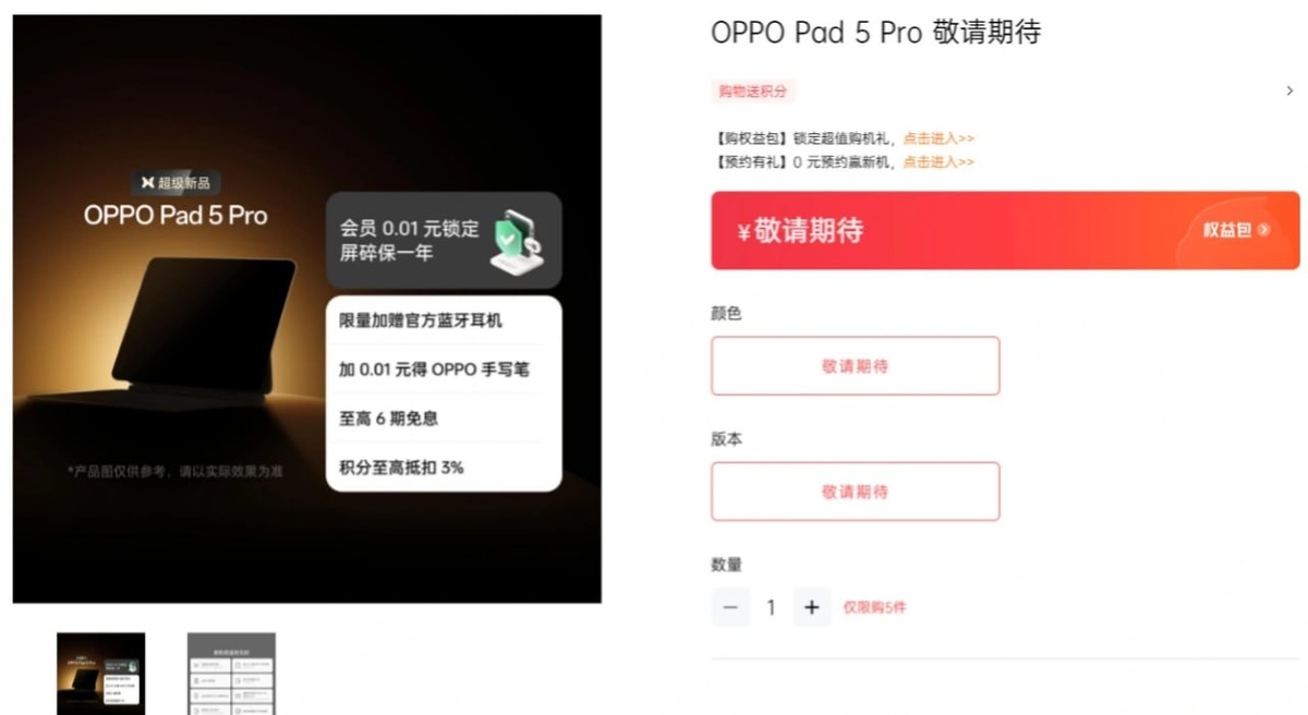 OPPO ΡΠΆΠ΅ Π²ΡΠ²Π΅Π»Π° Pad 5 Pro Π½Π° ΠΎΡΠΈΡΠΈΠ°Π»ΡΠ½ΡΠΉ ΡΠ°ΠΉΡ Π΄Π»Ρ Π±ΡΠΎΠ½ΠΈΡΠΎΠ²Π°Π½ΠΈΡ, Π° ΠΏΠΎ ΡΠ°Π½Π½ΠΈΠΌ Π΄Π°Π½Π½ΡΠΌ ΠΌΠΎΠ΄Π΅Π»Ρ ΠΌΠ΅ΡΠΈΡ Π² ΡΠΎΡΠΌΠ°Ρ Β«ΠΏΠ»Π°Π½ΡΠ΅Ρ Π²ΠΌΠ΅ΡΡΠΎ Π½ΠΎΡΡΠ±ΡΠΊΠ°Β» Ρ ΠΊΡΡΠΏΠ½ΡΠΌ ΡΠΊΡΠ°Π½ΠΎΠΌ, ΡΠΎΠΏΠΎΠ²ΡΠΌ ΡΠΈΠΏΠΎΠΌ ΠΈ Π½Π°Π±ΠΎΡΠΎΠΌ Π°ΠΊΡΠ΅ΡΡΡΠ°ΡΠΎΠ²: π ΠΡΠΈΡΠΈΠ°Π»ΡΠ½ΡΠΉ ΡΠΈΠ·Π΅Ρ ΠΏΠΎΠ΄ΡΠ²Π΅ΡΠΆΠ΄Π°Π΅Ρ ΠΊΠ°ΠΊ ΠΌΠΈΠ½ΠΈΠΌΡΠΌ Π΄Π²Π΅ Π²Π΅ΡΠΈ: ΠΏΠ»Π°Π½ΡΠ΅Ρ ΠΏΠΎΠ»ΡΡΠΈΡ ΠΏΠ»Π°Π²Π°ΡΡΡΡ ΠΊΠ»Π°Π²ΠΈΠ°ΡΡΡΡ-ΠΏΠΎΠ΄ΡΡΠ°Π²ΠΊΡ ΠΈ ΠΏΠΎΠ΄Π΄Π΅ΡΠΆΠΊΡ ΡΡΠΈΠ»ΡΡΠ° π ΠΠΎ Π΄Π°Π½Π½ΡΠΌ ΠΈΠ½ΡΠ°ΠΉΠ΄Π΅ΡΠ°, ΡΡΡΡΠΎΠΉΡΡΠ²ΠΎ ΠΎΡΠ½Π°ΡΡΡΡ Β«ΠΏΡΡΡΠΌ ΠΏΠΎΠΊΠΎΠ»Π΅Π½ΠΈΠ΅ΠΌ Snapdragon 8 EliteΒ», Π½ΠΎ ΠΎΠΊΠΎΠ½ΡΠ°ΡΠ΅Π»ΡΠ½ΠΎΠ΅ Π΅ΡΡ ΡΡΠΎΠΈΡ Π΄ΠΎΠΆΠ΄Π°ΡΡΡΡ ΠΎΡ ΡΠ°ΠΌΠΎΠΉ OPPO π ΠΠΊΡΠ°Π½ β 13,2-Π΄ΡΠΉΠΌΠΎΠ²ΡΠΉ LCD Ρ ΡΠ°Π·ΡΠ΅ΡΠ΅Π½ΠΈΠ΅ΠΌ 3K, ΡΠΎ Π΅ΡΡΡ ΡΡΠ°Π²ΠΊΠ° Π΄Π΅Π»Π°Π΅ΡΡΡ Π½Π΅ Π½Π° OLED, Π° Π½Π° ΠΊΡΡΠΏΠ½ΡΡ ΡΠ°Π±ΠΎΡΡΡ ΠΏΠ°Π½Π΅Π»Ρ π Π ΠΊΠΎΠ½ΡΠΈΠ³ΡΡΠ°ΡΠΈΡΡ