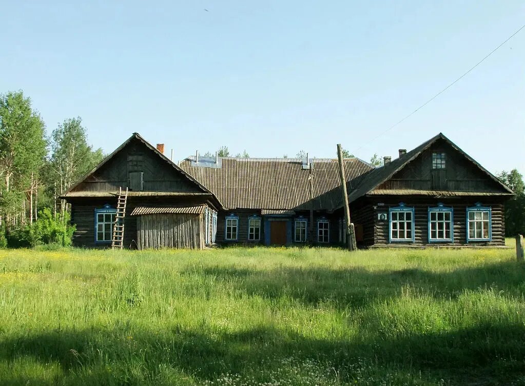 Родительский деревянный дом почти в начале деревенской широкой улицы. Посередине — одна накатанная колея от редко проезжающих машин и телег, кругом зелёная короткая трава, подстриженная овцами, и разноцветный петух на одной ножке в окружении кур. Дальше по улице виден ряд деревянных домиков за оградами. Рядом высокий деревянный забор, за ним в щели видно маму: копается в огороде. Посреди забора большая яма с песком: либо её заполняли, либо из неё брали на свои нужды. Вдоль забора, у столбов, свежий песок — можно предположить, что забор недавно перенесли в сторону улицы.