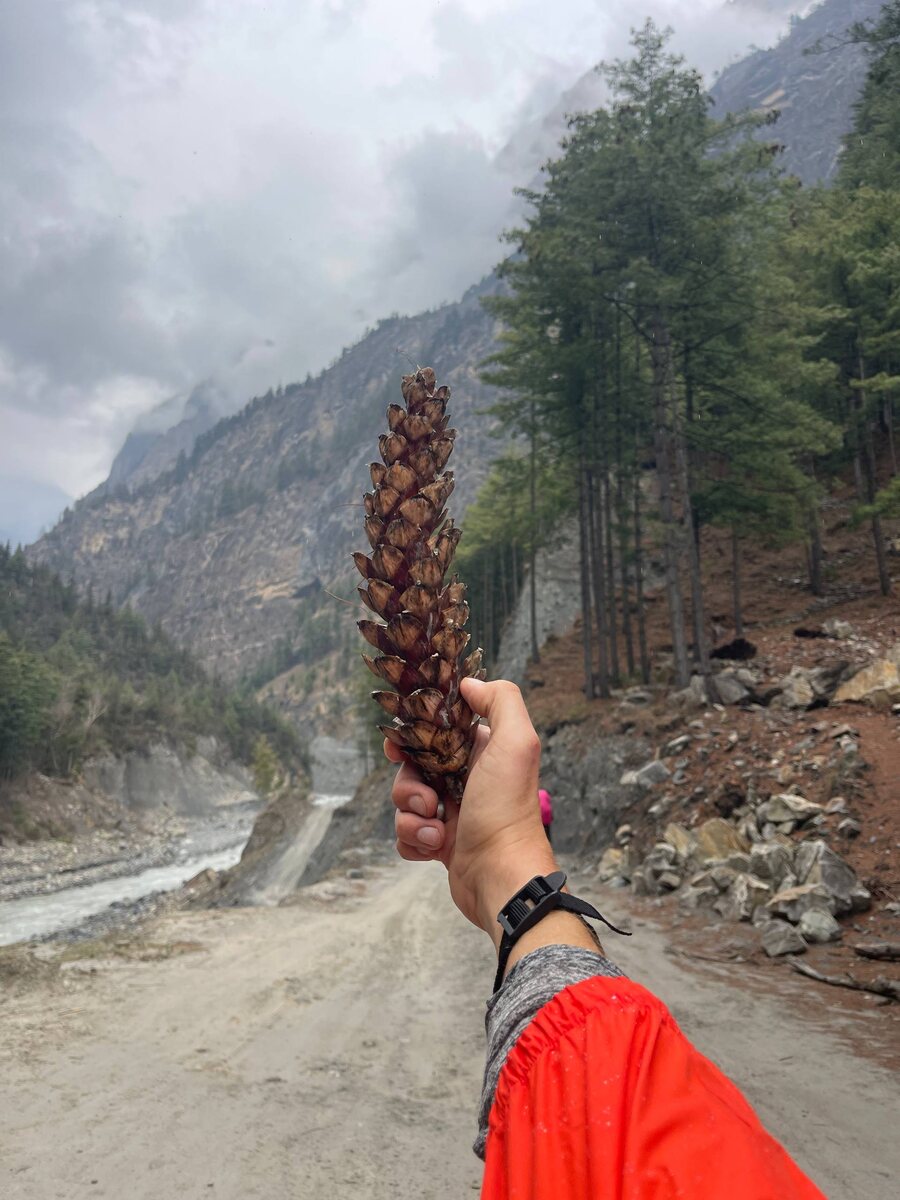️⃣ 🏔️ Кольцо Аннапурны Чаме - Верхний Писанг 📈 2670м - 3300м Сегодня вышли из Чаме и дошли до Верхнего Писанга. Из-за дождя день получился длинным - несколько часов сидели в Бхаратанге, пережидали. Пили чай, яблочный сок и ели яблочный пирог из местных яблок. Утром в Чаме было солнце, даже голубое небо, но буквально через 10 минут после старта всё затянуло и почти весь день моросил дождь. Не сильный, но постоянный. К вечеру погода начала налаживаться, облака стали расходиться, появилось небо, идти стало намного приятнее. Сам маршрут очень красивый, сложно выделить что-то одно - река, водопады, лес, отвесные скалы и гора. Прошли первый подвесной мост, ощущения непередаваемые 😬 Под вечер, когда начали расходиться облака, впервые увидели Аннапурна II (7937м) выглядит невероятно мощно 🏔️ 🤒 По самочувствию - в целом всё нормально. Шли спокойно, не гнали, темп комфортный. К концу немного накрыла высота: появилась усталость, лёгкое головокружение и давление в голове. В покое более
