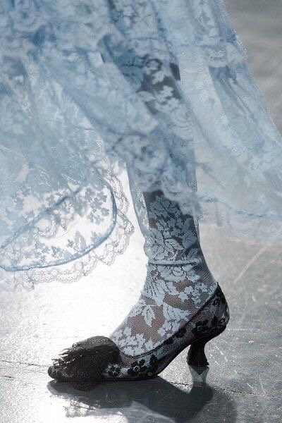 К счастью, исчезли из трендов полуспущенные вязаные носки, которые кутюрье сочетали с босоножками. А вот носки, гольфы, чулки остались.