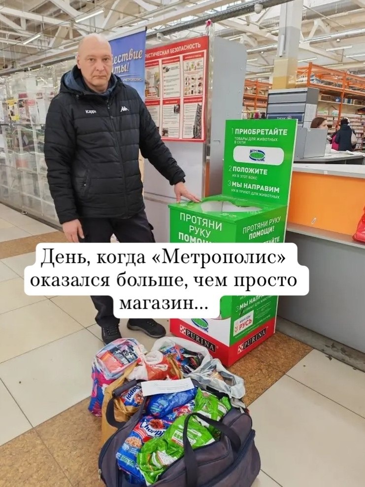 … Иногда самые большие дела происходят в самых обычных местах. Например, в «Метрополисе» С виду - обычный магазин, но внутри - место, где каждый день происходит добро. Недавно мы рассказывали вам о боксах помощи в «Пятёрочках» ❤️ А теперь делимся: такие же боксы есть и в магазинах «Метрополис». Они появились благодаря благотворительному фонду Банк еды Русь и магазинам «Метрополис» - чтобы помогать бездомным животным можно было легко, просто зашёл за покупками - и оставил немного для тех, кому сейчас труднее. И вчера мы снова увидели, как это работает. Степан и Юля открывают боксы - а там уже чья-то забота: корм и вкусняшки. Это про людей. Про того кто «не прошёл мимо»❤️ Про того кто «я могу чуть-чуть помочь»❤️ И именно из этого «чуть-чуть» складываются сытые дни наших хвостиков 🐾 Спасибо каждому, кто кладёт помощь в эти боксы, вы -часть большого доброго дела. Мы всё забрали, отвезём и распределим 🙏 и совсем скоро это станет чьим-то с Показать полностью...