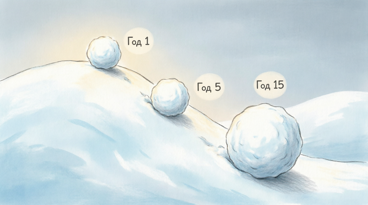 Представьте себе два способа копить деньги: 📌 Простой процент: Вы положили 100 000₽ под 10% в год. Каждый год забираете 10 000₽ прибыли и тратите их. Через 10 лет у вас всё те же 100 000₽ + 100 000₽ полученных процентов. 📌 Сложный процент: Вы положили те же 100 000₽ под 10%, но не забираете прибыль, а оставляете её расти. На второй год 10% начисляются уже на 110 000₽, на третий — на ещё большую сумму. Через 10 лет у вас будет не 200 000₽, а около 260 000₽. Дополнительные 60 000 ₽— это и есть магия сложного процента. Главный секрет: Время работает на вас сильнее, чем сумма вклада. В следующем посте продолжим тему про сложный %