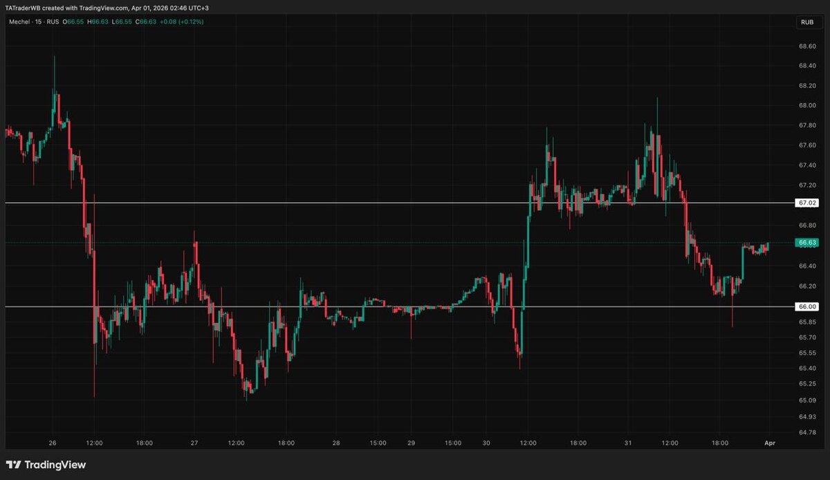 Планирую работать с: $MTLR Планирую присмотреть шорт на отскок от 67. Вход могу брать в диапазоне. 66,8 - 67. ✅ Стоп поставлю 0,5%, считается от уровня 67! РАССЧИТЫВАЙТЕ РИСКИ! При достижении +0,5% поставлю стоп в без убыток. Это условие торговли, то есть если будет вход, зайду. Не будет входа, НЕ зайду. НЕ призыв к действию. Больше идей в Базе. Если откроется выше уровня, пропущу. Мечел актуален, пока он торугется выше 66. Как только уйдет ниже 66 - идея не актуальна. Всем шикарной среды! 🤝