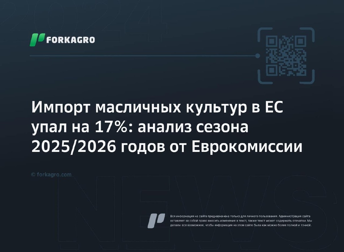 Импорт масличных культур в ЕС упал на 17%: анализ сезона 2025/2026 годов от Еврокомиссии