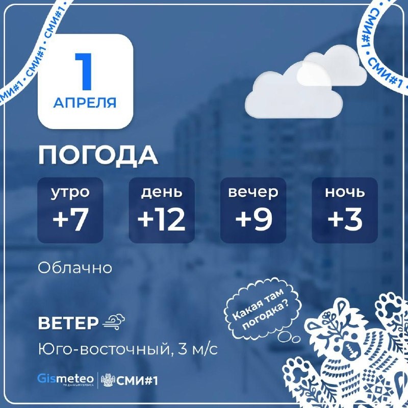 Днём синоптики прогнозируют +12°. Вечером сохранится такая же температура. Ожидается средний ветер до 3 м/с. Всем хорошего дня 😘 📲 Читайте нас в MAX 😊 Подписаться | Прислать новость