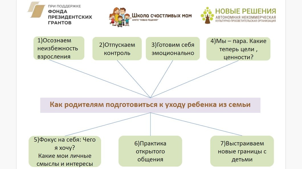 📝Занятие начали с определения своих сильных сторон в воспитании самостоятельности ребенка. Эта практика помогла не только осознать свою силу, но и выявить точки роста. 👶В каждом из нас есть три части личности: внутренний ребенок, внутренний родитель, внутренний взрослый. Если наш внутренний ребенок адаптивный или бунтующий, то будет сложно выстроить здоровые отношения со своими собственными детьми. На вебинаре узнали, как исцелить внутреннего ребенка, чтобы сделать его свободным. ❗️Психологическая сепарация от родителей очень важна. Последствия недостаточной сепарации затрагивают многие сферы жизни: от низкой самооценки и беспомощности в принятии решений до проблем с самореализацией. 🤔Как сепарироваться от родителей, не разрушив отношений? Здесь нет быстрого решения, нужен системный подход: 1) Беру ответственность на себя. 2) Укрепляю границы. 3) Решаю сама. 4) Отделяюсь эмоционально. 5) Осознаю свои настоящие потребности. 🌸Избавиться от сепарационной тревоги родителям пом