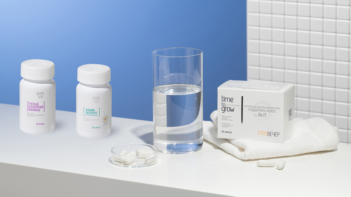 В программе Time to grow БАДы - элемент в комплексной терапии восстановления густоты волос - восполнение дефицитов, поддержка здорового состояния кожи головы, укрепление фолликулов, снижение выпадения, активация роста, восстановление густоты и качества волос.