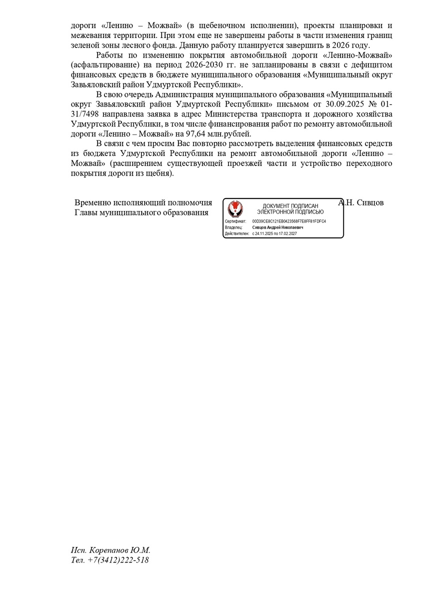 Господин Таранов НЕ выделяет району средства на ремонт Ленино-Можвай, которые Сивцов запрашивает повторно.