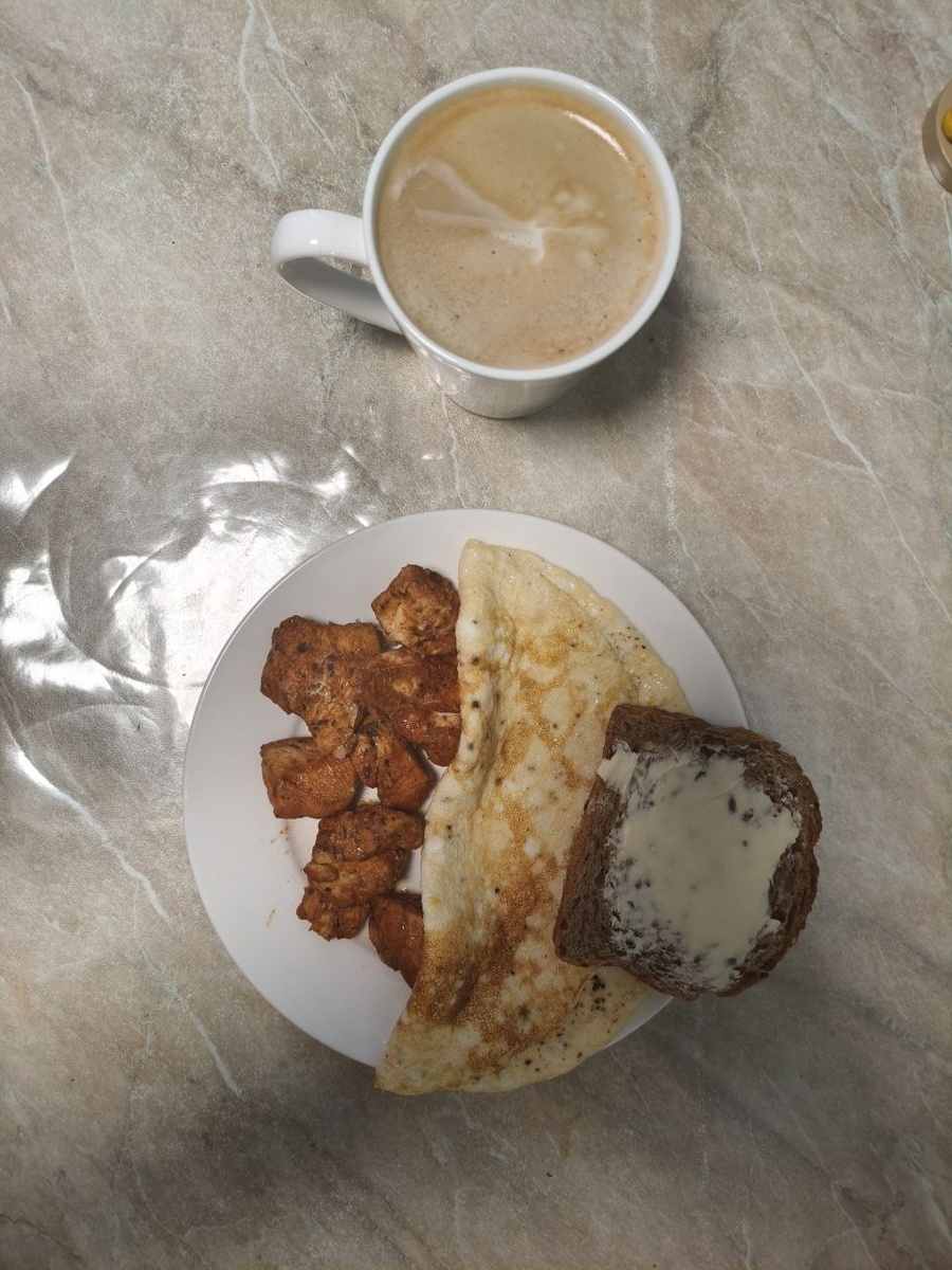 42 день, завтрак. Пошла первая ребалансировки завтрака. Вчера вечером не добирал жиров. Сегодня решил утром сразу маслом компенсировать, т.к. и сегодня был бы дефицит. Предсказуемое питание = предсказуемый результат. #мужикдумает #жриправильно #белокжирныйуглевод