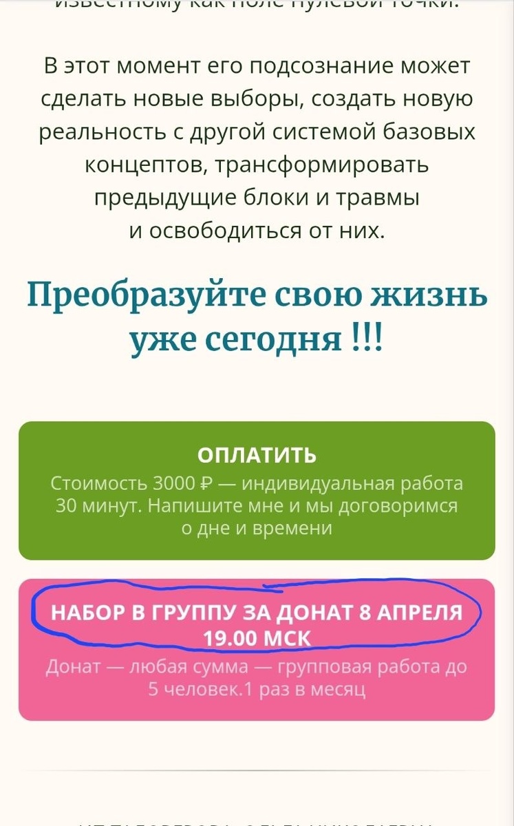 8 апреля среда в 19.00 мск онлайн 💰За ДОНАТ вместо обычной стоимости 3000 ₽ провожу 1 раз в месяц Только 5 человек Что такое точка сборки читать ЗДЕСЬ жми на текст 🍀🍀🍀🍀🍀🍀☘☘☘🍀 😊Отзывы о точке сборке тех, кто прошел 😊И здесь отзывы жми на текст 🌷🌷🌷🌷🌷🌷🌷🌷🌷🌷🌷 Запись в ЛС @olga_rasstanovki_makkarty Реклама ИП Таловерова Ольга Николаевна ИНН 235601581265 еrid: 2VtzqwzjAjx