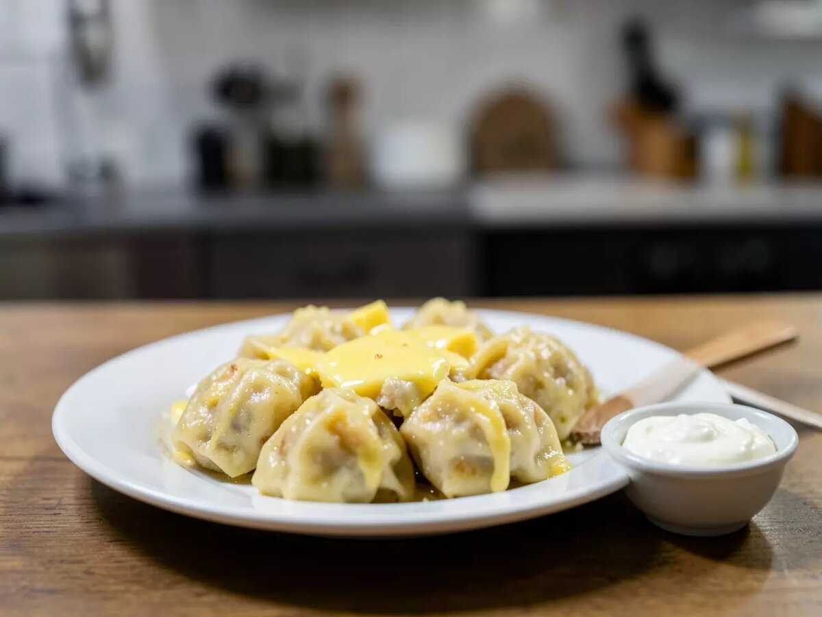 Употреблять кушанье следует немедленно после извлечения из котла. Традиционный сервировочный набор предлагает растопленный коровий жир, добавляемый в порционную посуду, а также кефирный соус, эссенцию, дробленый перец либо острую горчицу. Оставшуюся после варки жидкость вполне уместно пустить в ход, разливая по пиалам либо сдабривая основное блюдо ради обретения дополнительной нежности.