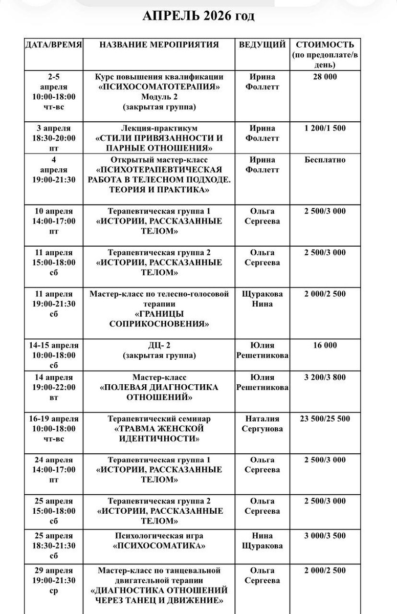 С 1 апреля 🌿ждём вас на наших мероприятиях.