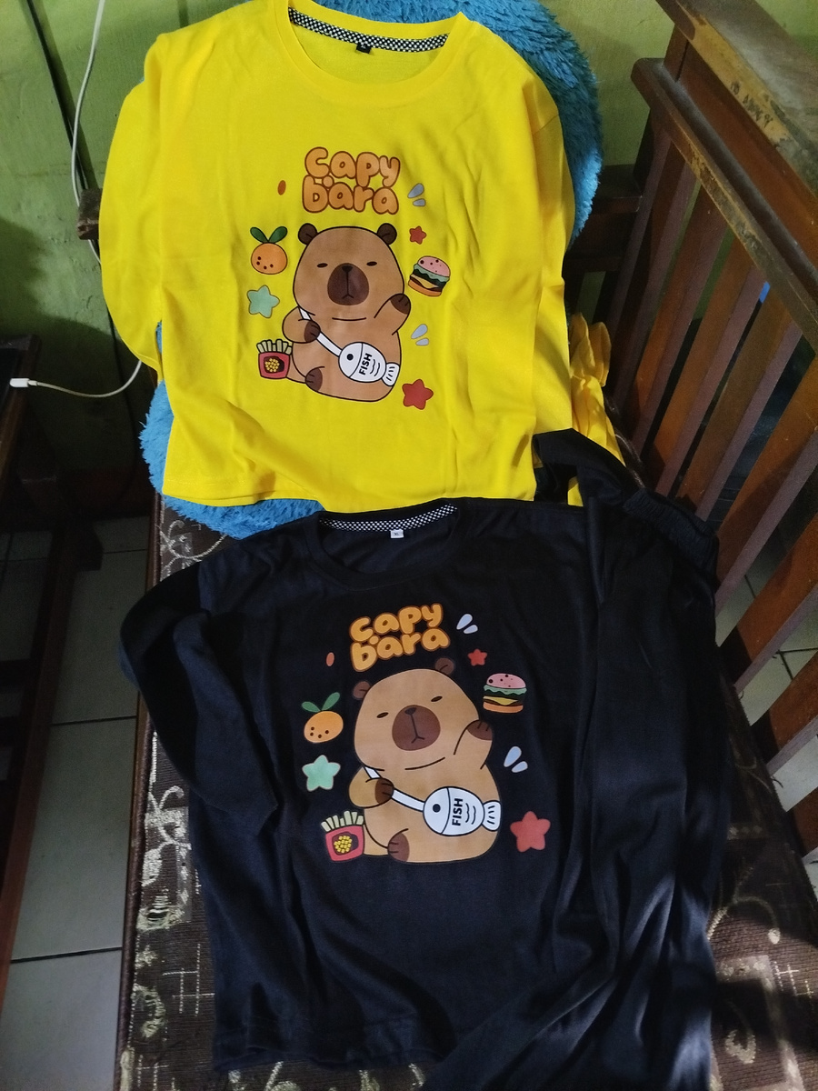 Амира на оставшиеся с Идул-Фитри деньги захотела купить пижаму с капибарой - и заказала две на Шопи: чёрную и жёлтую